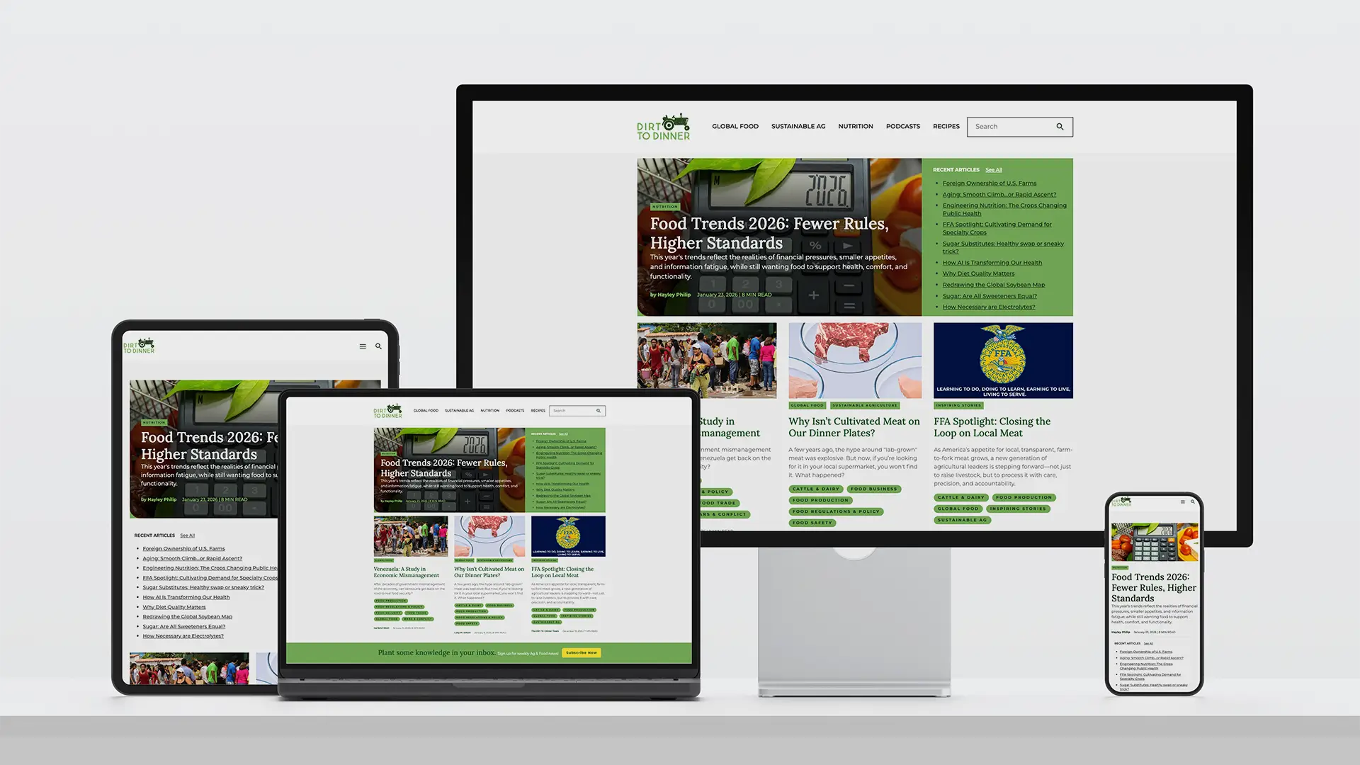 Dirt-to-Dinner needed a website that could support the depth of their content and the range of audiences they serve. Visual Goodness helped restructure and modernize the platform through research-driven UX, analytics review, accessibility updates, and a rebuilt CMS that makes publishing and navigating content easier and more intuitive. By aligning information architecture, design, and performance with their mission, we created a scalable digital foundation that improves usability for readers and efficiency for their internal team, while setting the stage for long-term growth.