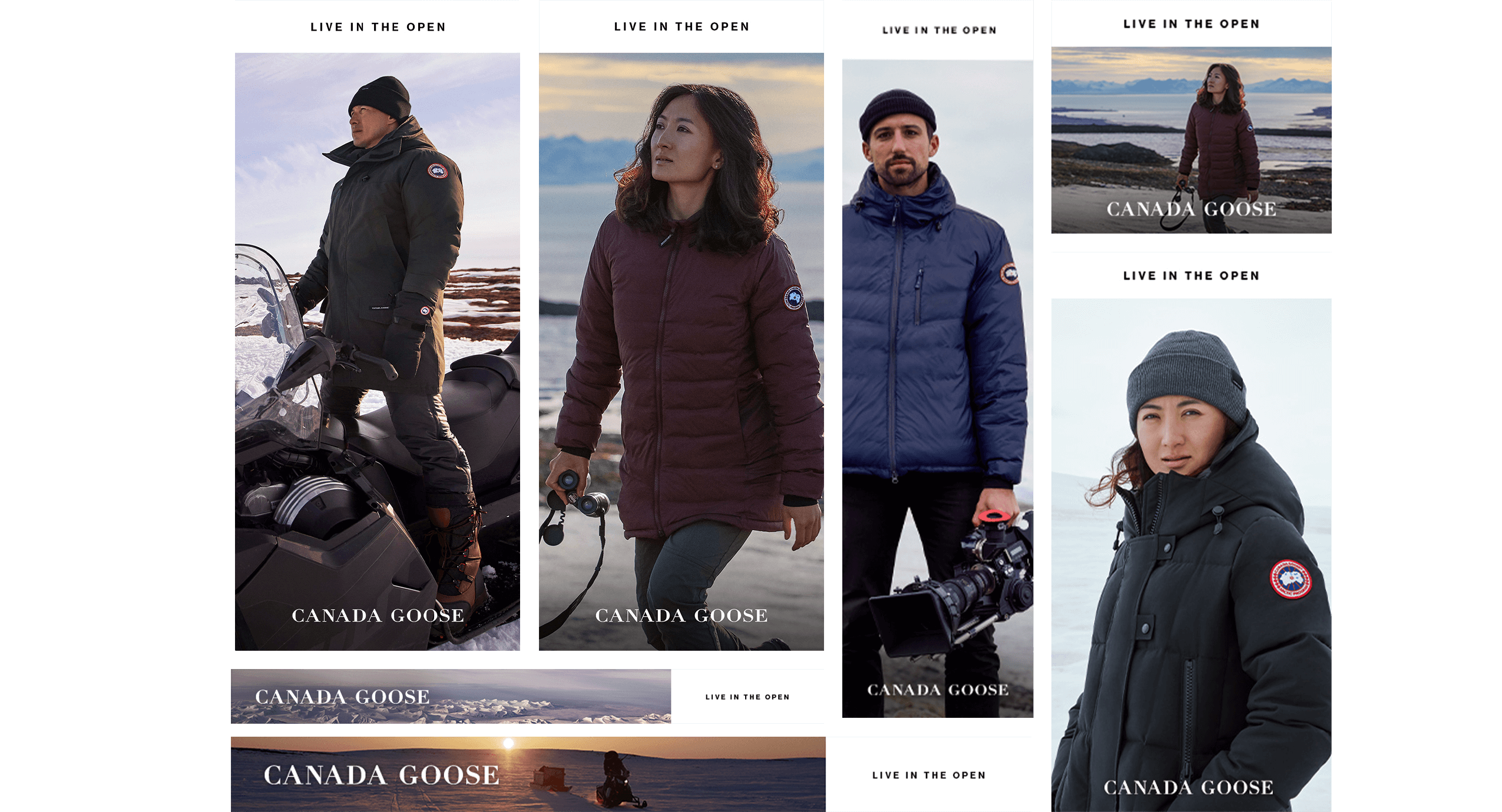 VG Worked with Huge to match existing practical video composites of different snow patterns, in H5 and JS. Canada Goose products had to undulate in the varying wind speeds and snowflakes behaved in several different ways.